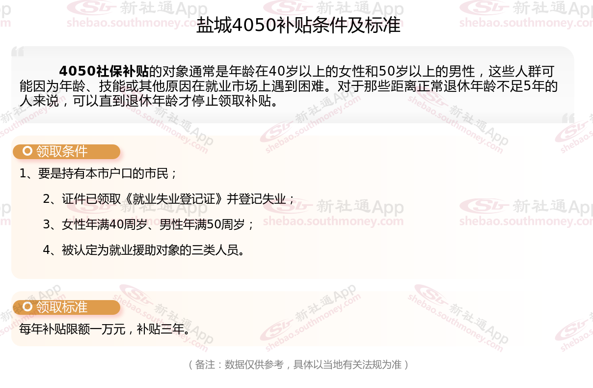 二、盐城4050社保补贴标准及条件4050社保补贴,最新如下