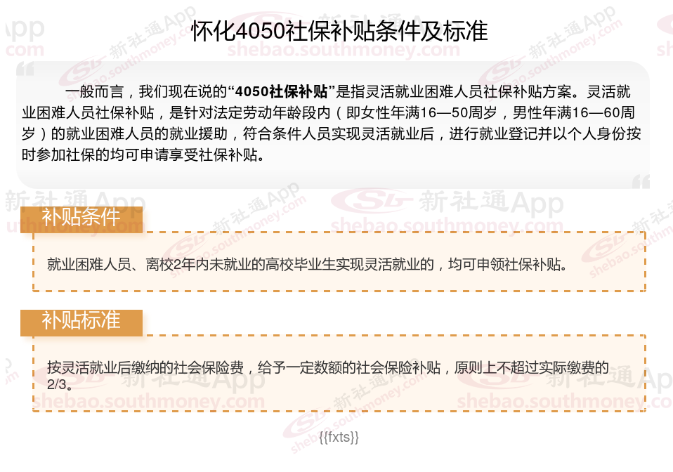 一、2025年怀化灵活就业4050社保补贴标准最新是多少?