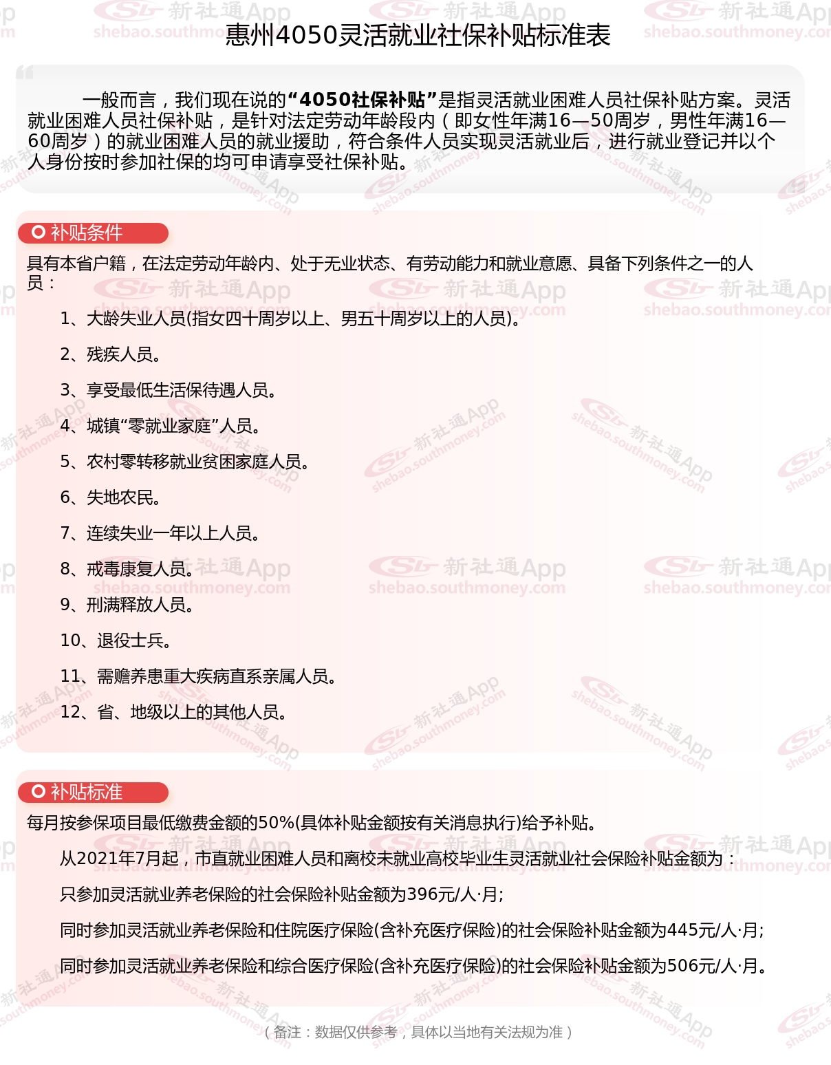 二、2025年惠州4050社保补贴标准及条件,最新如下: