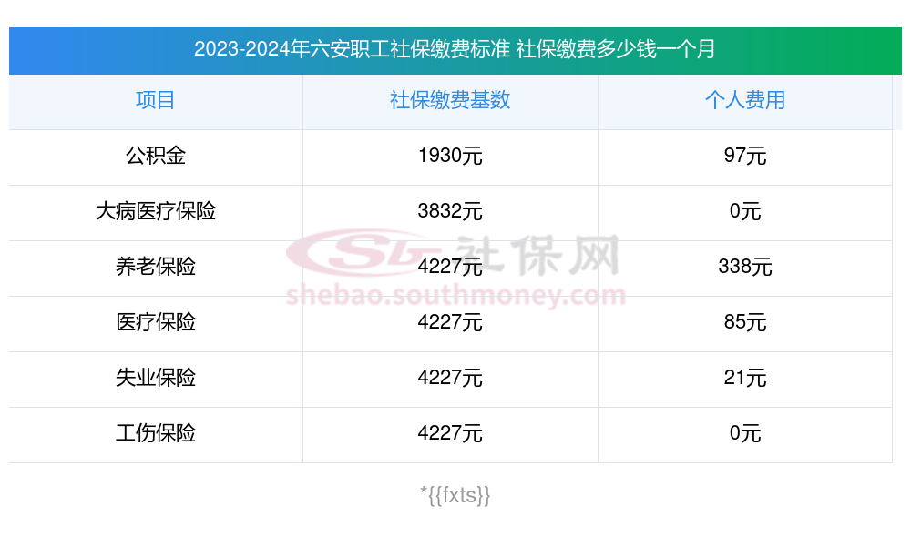 六安缴费社保比例一览 社保公司和个人各交多少?下表是2024-2025年六安社保费用明细参考,新社通app-社保缴费查询工具提供的最新数据如下: