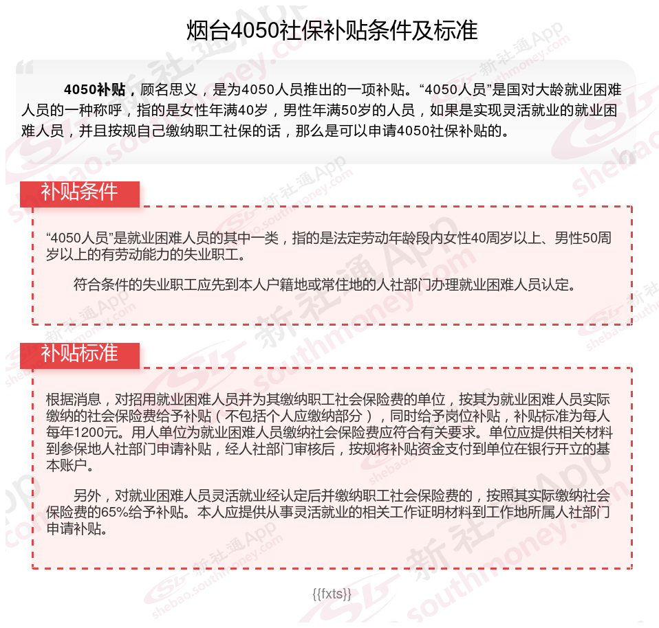 二、烟台4050社保补贴标准及条件4050社保补贴,最新如下