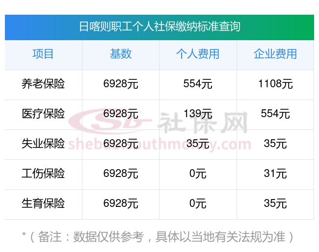 2025年日喀则社保缴费多少钱?下表是2024-2025年日喀则社保费用明细参考,新社通app-社保缴费查询工具提供的最新数据如下: