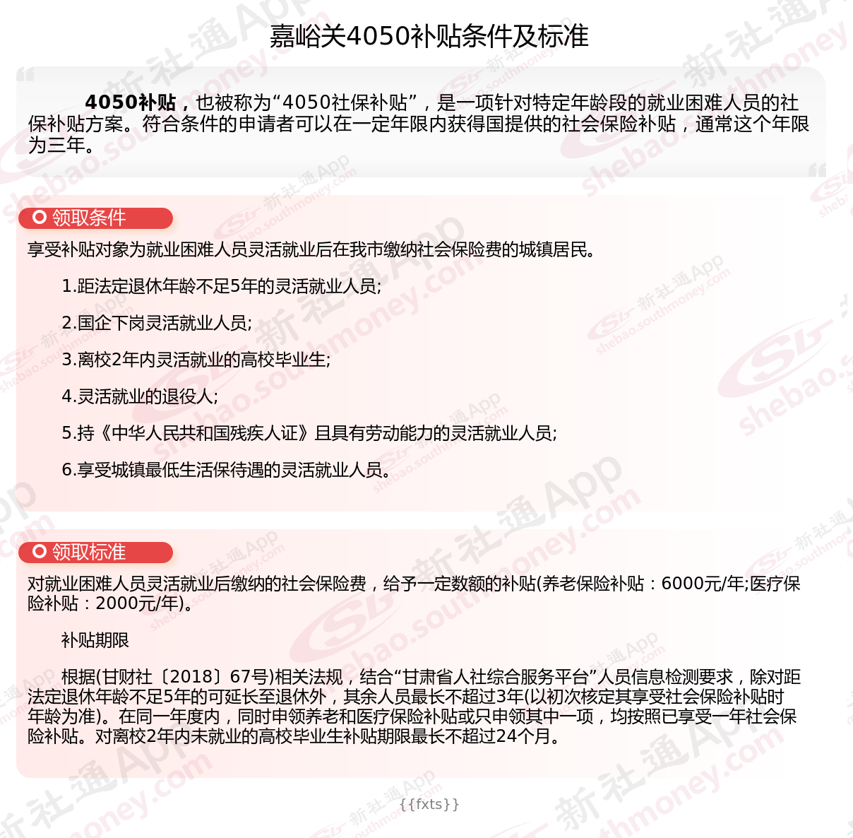 二、嘉峪关4050社保补贴标准及条件2025年,最新如下