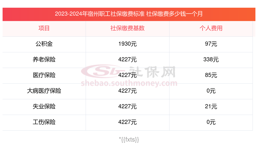 2025年宿州社保缴费多少钱?下表是2024-2025年宿州社保费用明细参考,新社通app-社保缴费查询工具提供的最新数据如下: