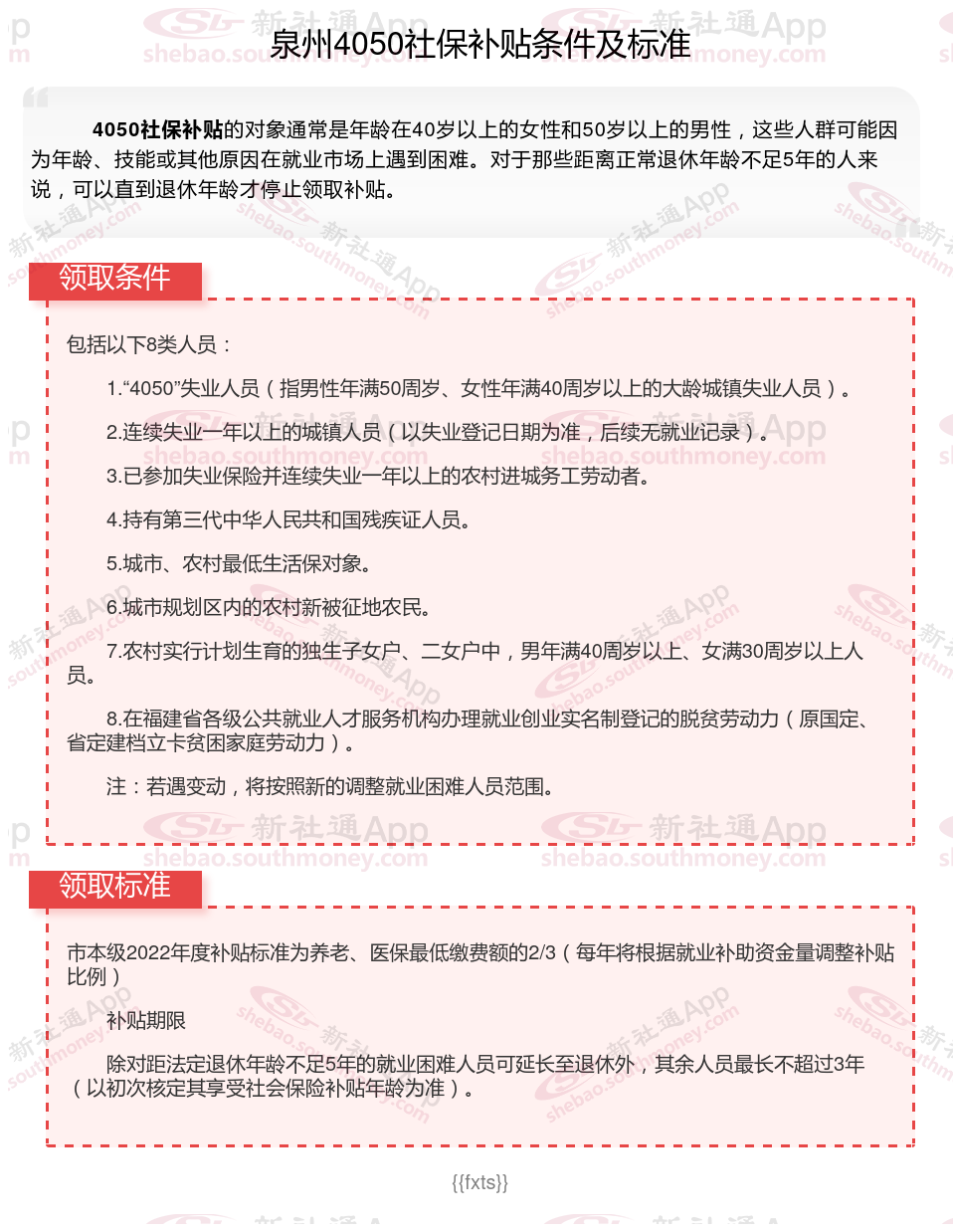 一、2023-2024年泉州4050社保补贴标准及条件是多少?