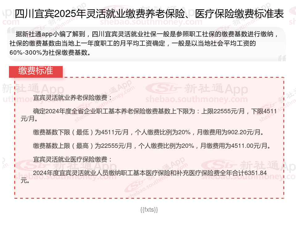 那么,四川宜宾自由职业社保一个月多少钱?根据新社通app-社保缴费查询工具提供的2025社保缴费标准详情数据: