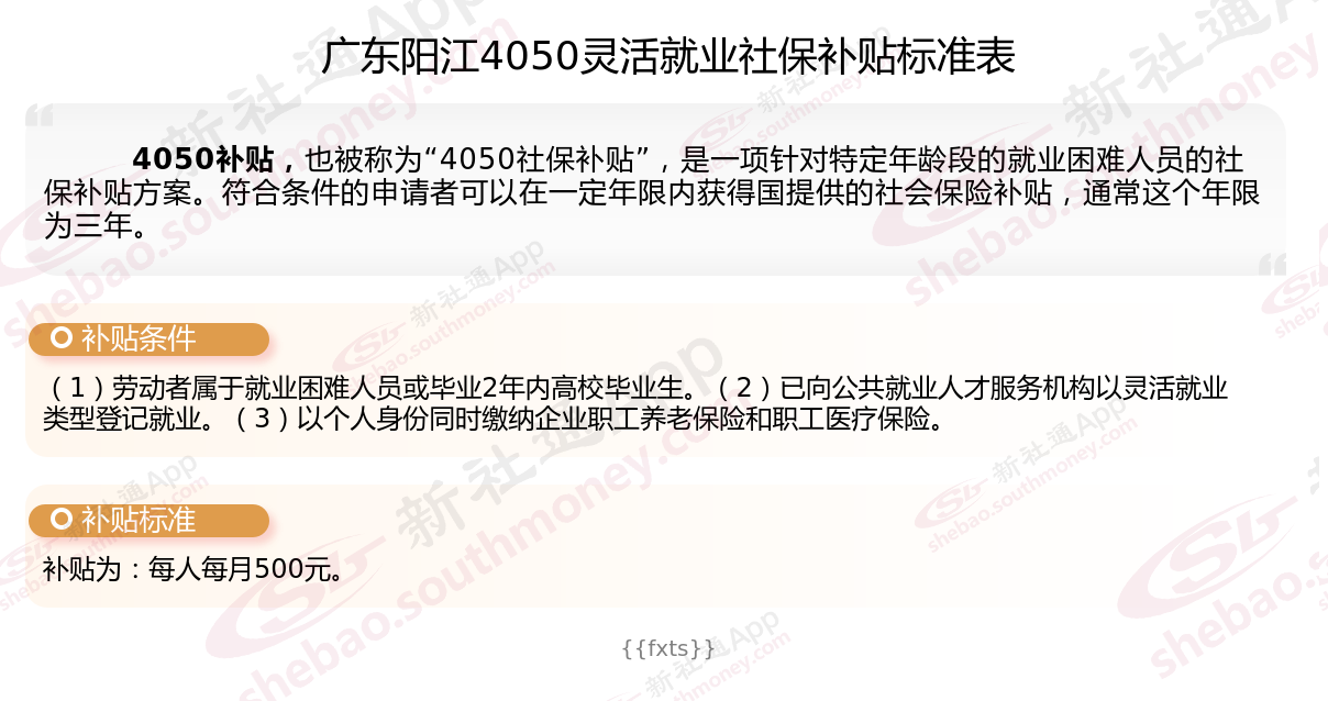 一、广东阳江灵活就业4050社保补贴标准和条件是什么?