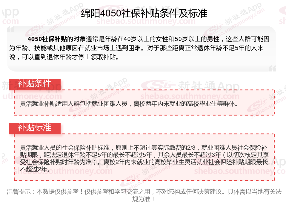 一、绵阳4050社保补贴标准及条件2025年最新消息