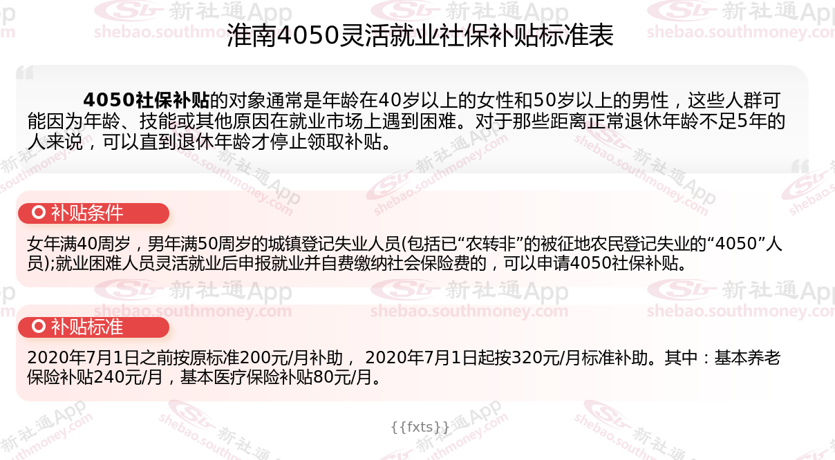 一、2025年淮南灵活就业4050社保补贴标准及条件是什么