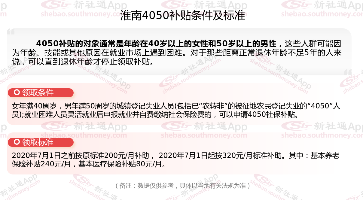 二、2025年淮南4050社保补贴标准及条件,最新如下: