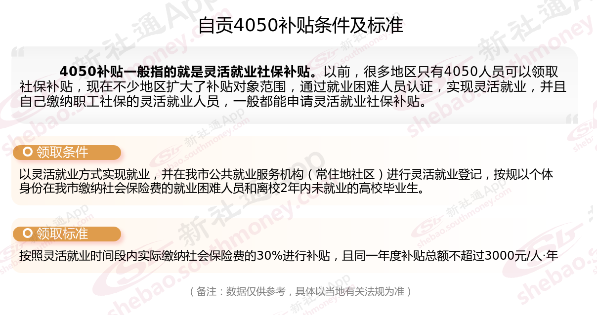 二、2025年自贡4050社保补贴标准是多少?条件是什么?