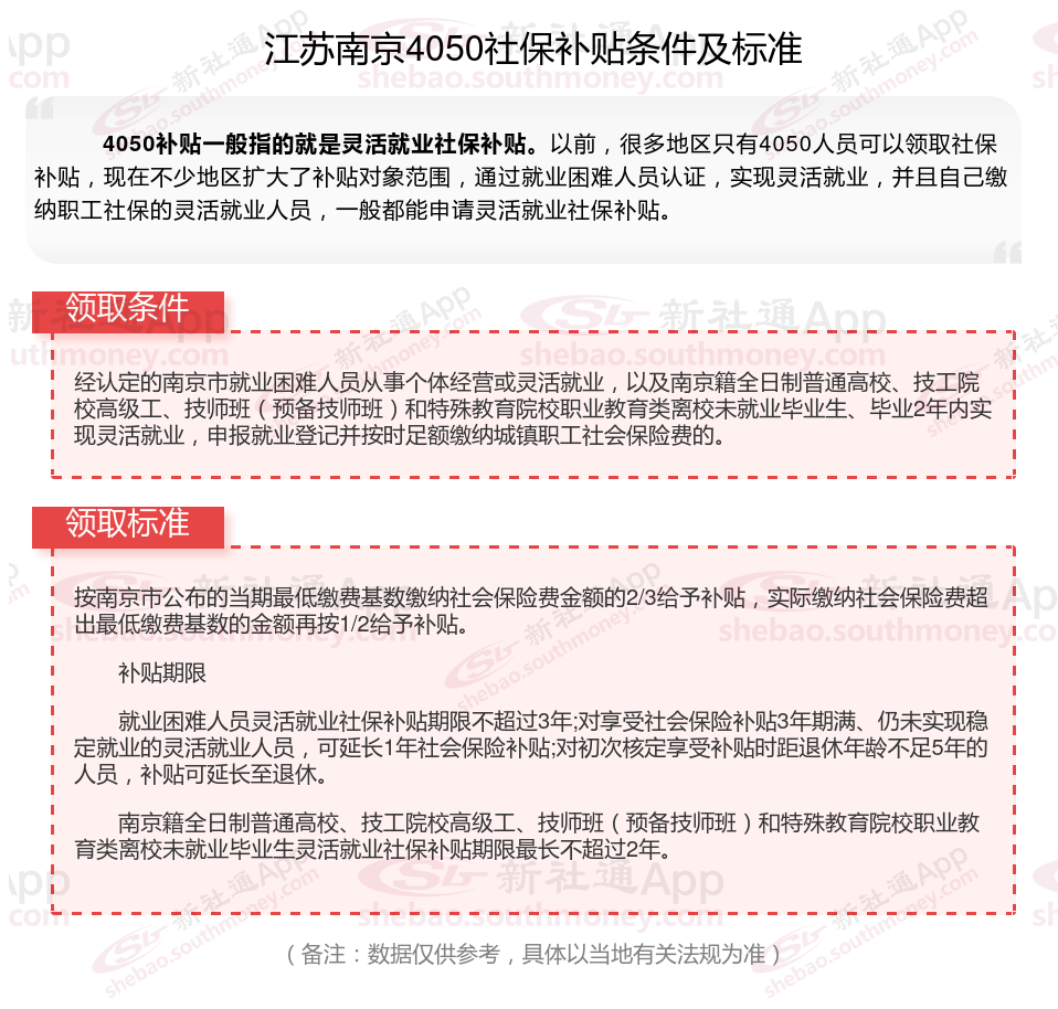 一、2025年江苏南京4050社保补贴新规2025年江苏南京4050社保补贴标准是什么,需要什么条件?