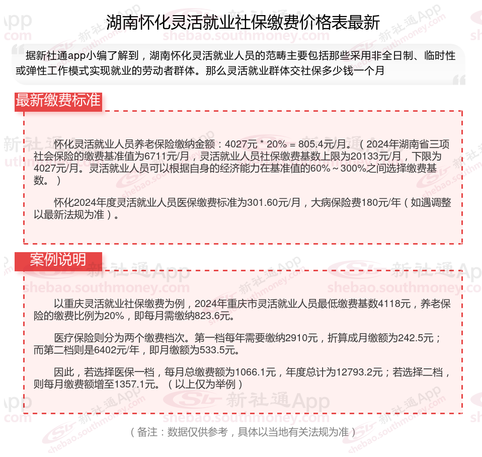 湖南怀化灵活就业人员社保每月交多少钱?根据新社通app-社保缴费查询工具提供的最新数据如下: