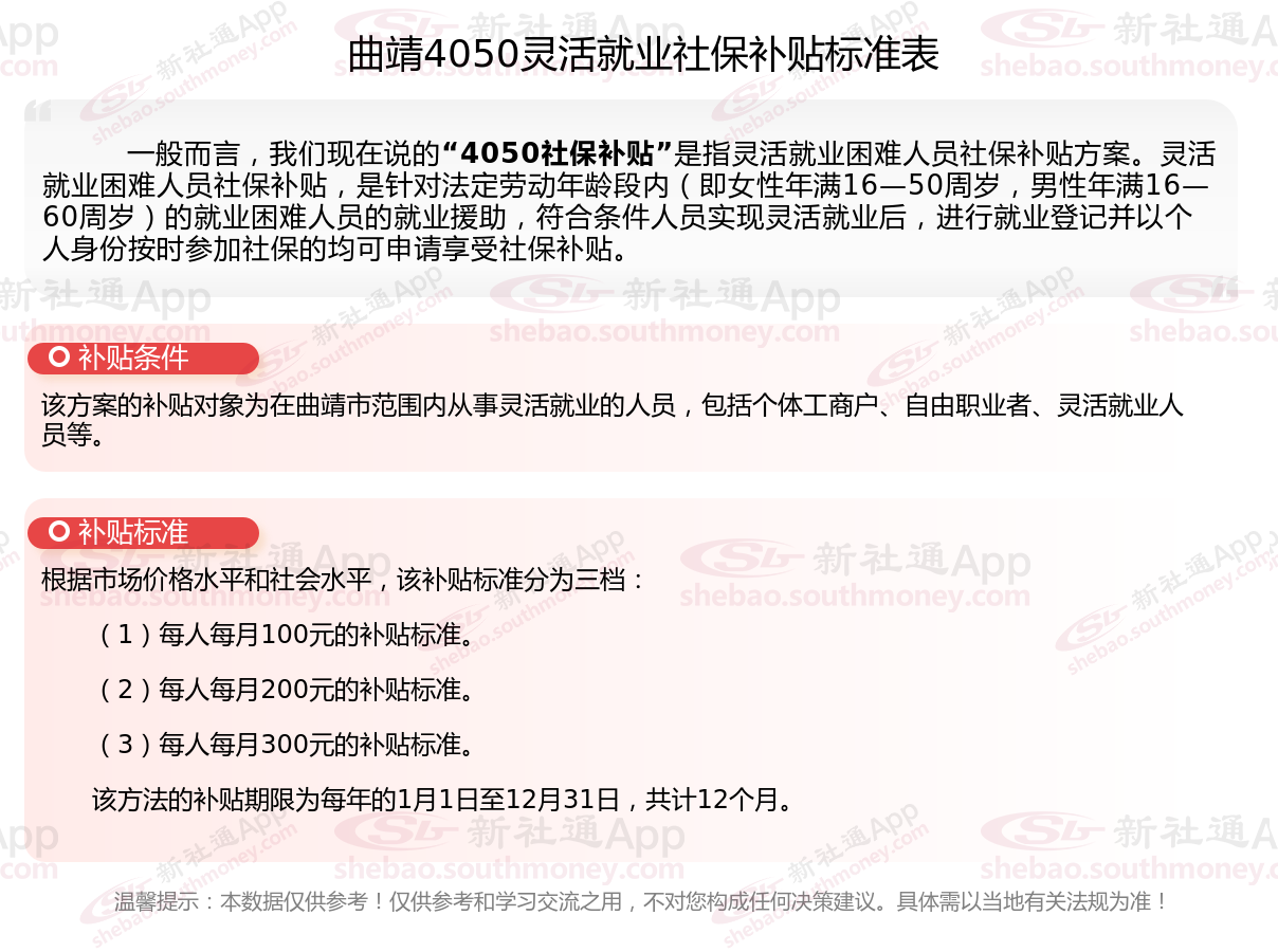 一、2025年曲靖4050社保补贴标准及条件是多少?