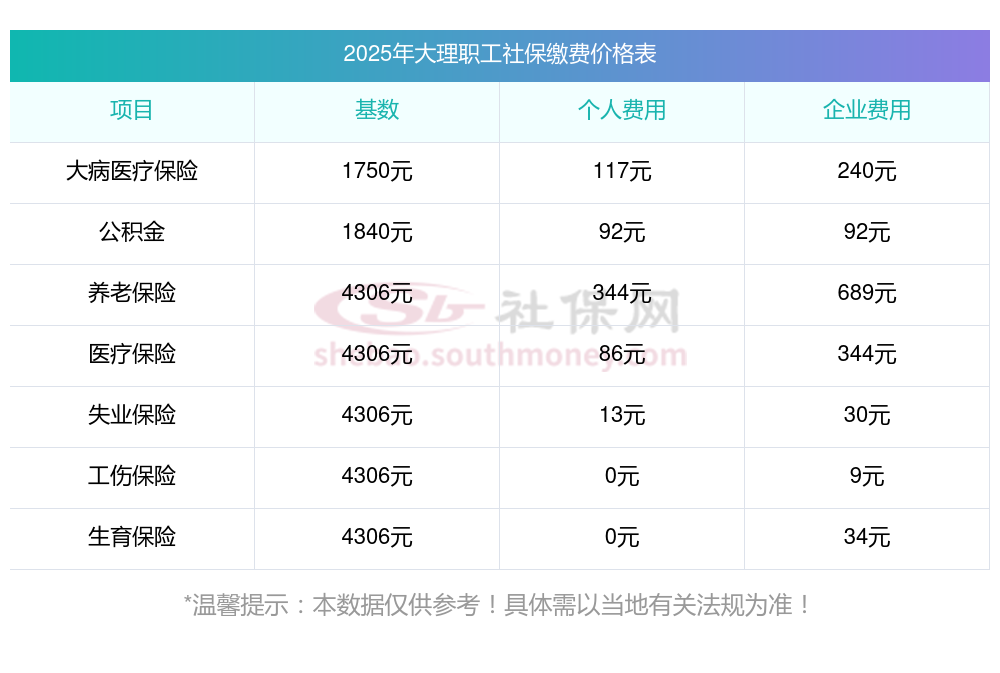 大理今年企业社会保险费缴费标准是多少?新社通app小编缴费查询工具提供的最新数据如下: