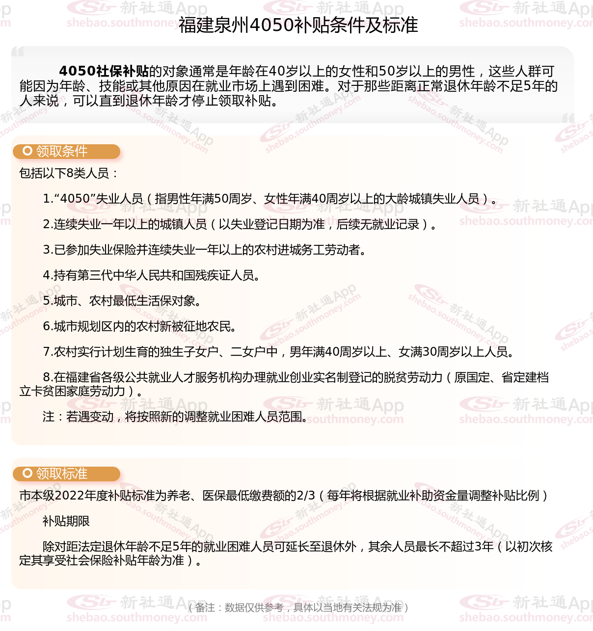 二、福建泉州4050社保补贴标准及条件4050社保补贴,最新如下