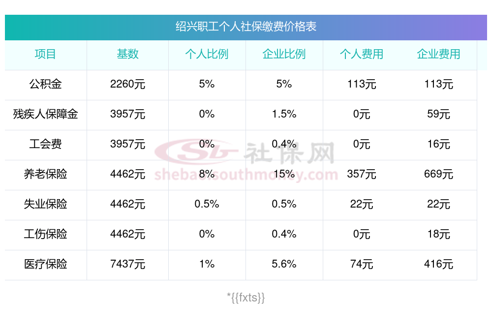 浙江社保多少钱一个月?下表是2024-2025年绍兴社保费用明细参考,新社通app-社保缴费查询工具提供的最新数据如下:
