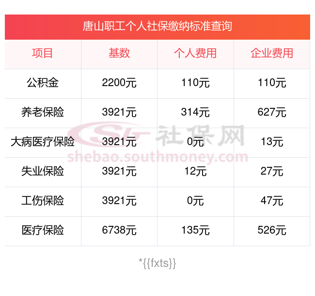 2025年唐山社保缴费多少钱?社保要缴够多少年可以退休?下表是2024-2025年唐山社保费用明细参考,新社通app-社保缴费查询工具提供的最新数据如下: