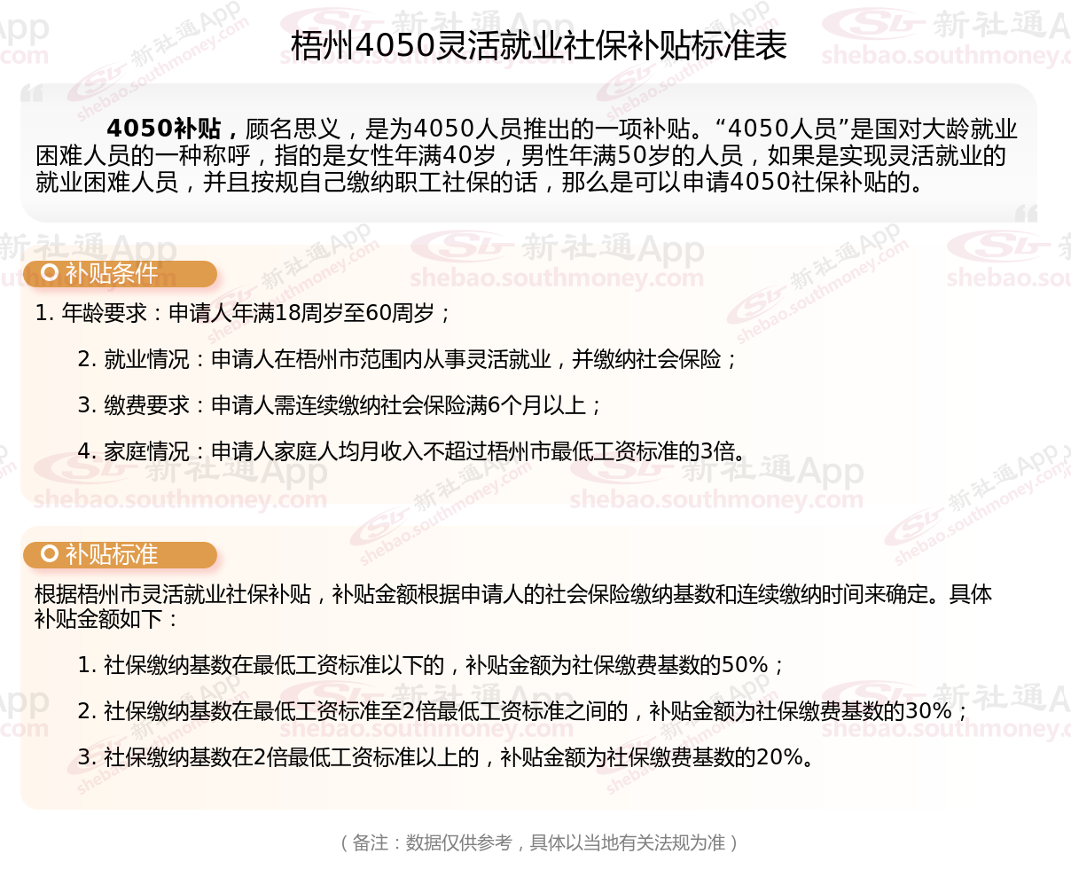 一、梧州灵活就业人员4050补贴最新标准2025年,梧州4050灵活就业人员养老补贴一年可以有多少钱?