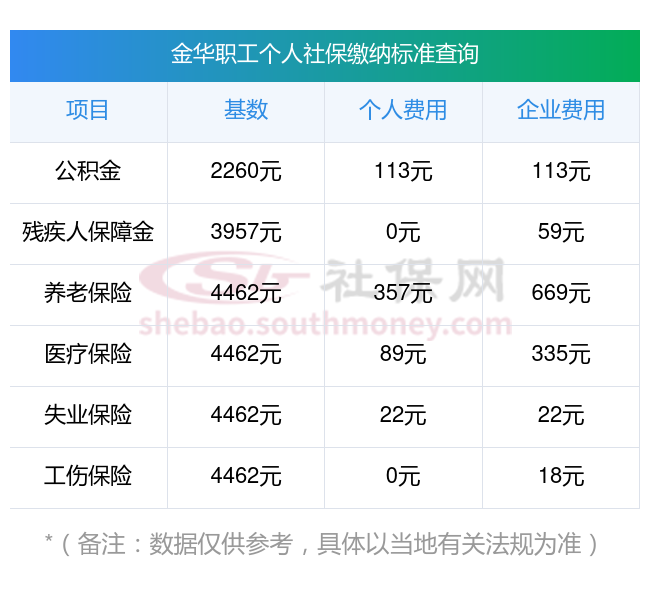 金华2025年社保缴费个人和公司各承担多少?金华五险一金每月最低交多少?下表是2025年金华社保费用明细参考,新社通app-社保缴费查询工具提供的最新数据如下:
