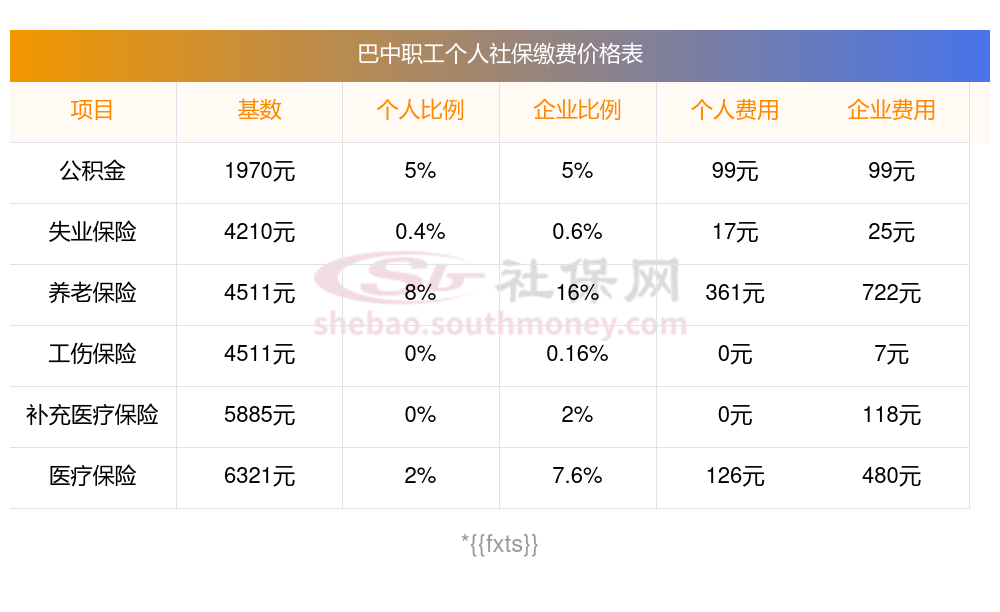 巴中最低配的五险一金自己交多少?下面和社保网一起来了解下2024-2025年巴中最低配社保费用明细参考,新社通app-社保缴费查询工具提供的最新数据如下: