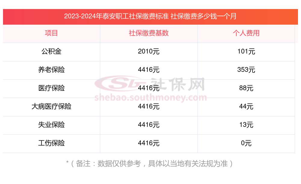 泰安2025年社保缴费个人和公司各承担多少?泰安五险一金每月最低交多少?下表是2025年泰安社保费用明细参考,新社通app-社保缴费查询工具提供的最新数据如下:
