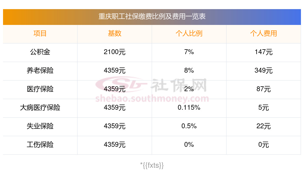 2025年重庆社保缴费多少钱?下表是2024-2025年重庆社保费用明细参考,新社通app-社保缴费查询工具提供的最新数据如下: