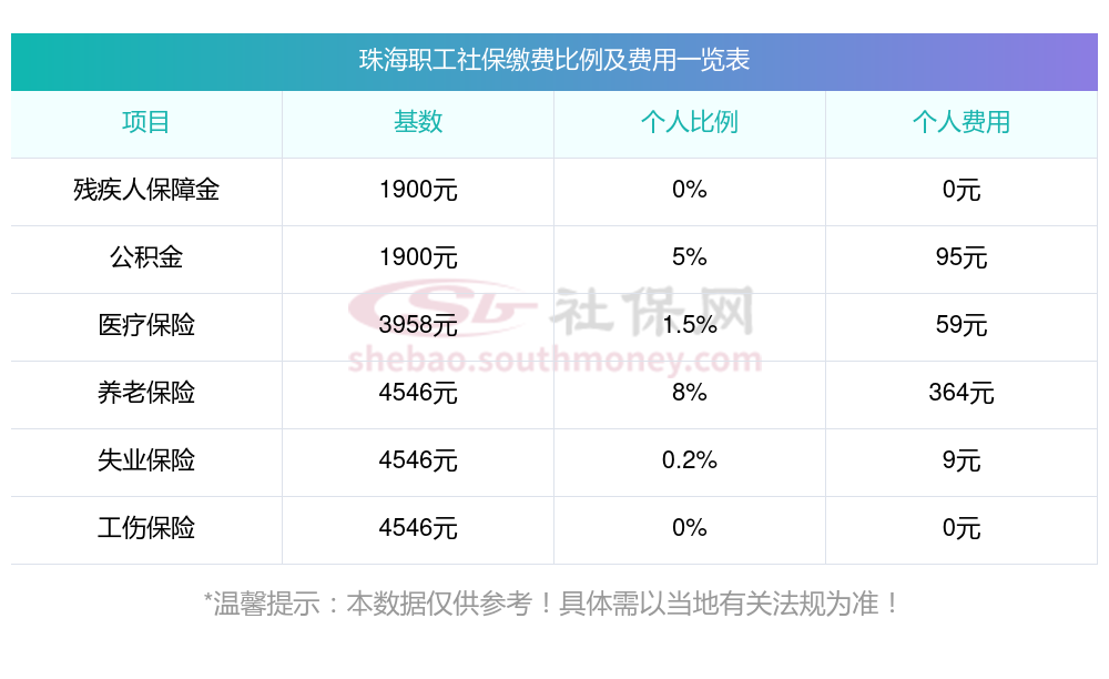广东珠海缴费社保比例一览 社保公司和个人各交多少?下表是2024-2025年广东珠海社保费用明细参考,新社通app-社保缴费查询工具提供的最新数据如下: