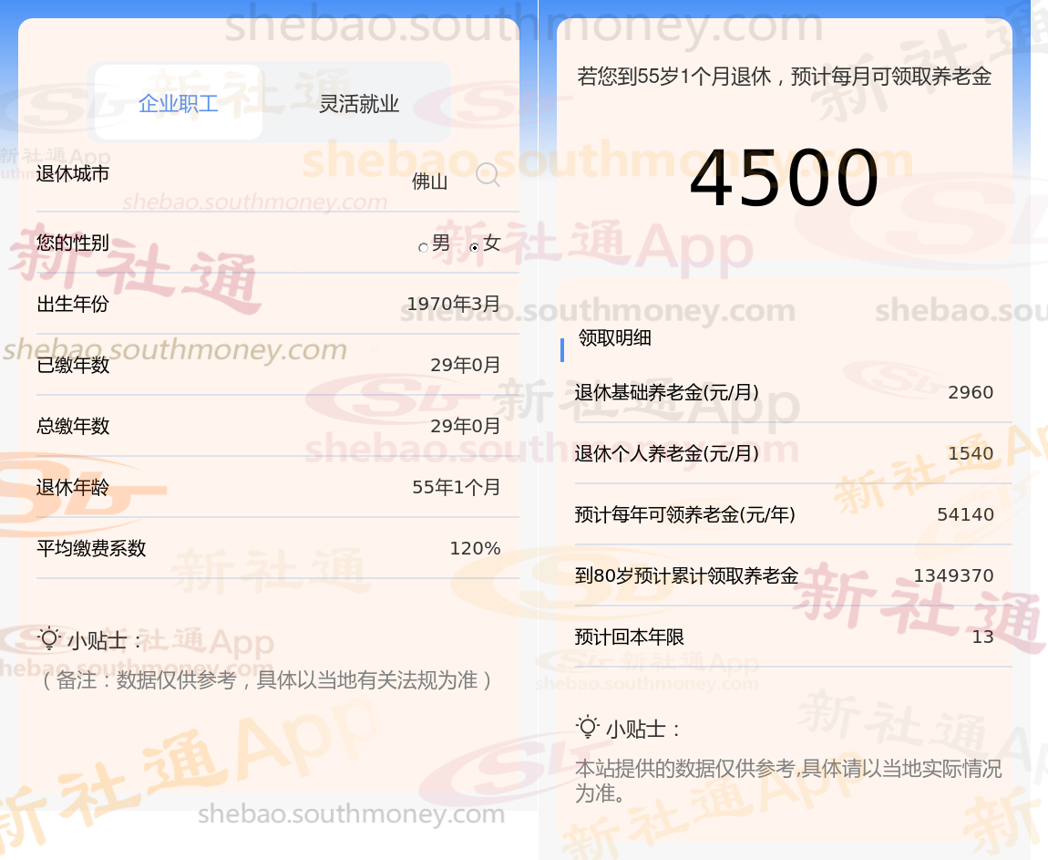 新社通app养老金计算器算出退休金每月多少钱?