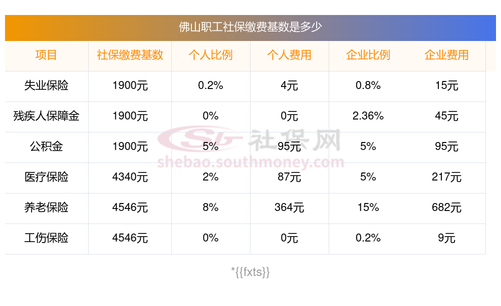 佛山社保缴纳情况是怎样的?一起和新社通一起来看看下面的明细表: