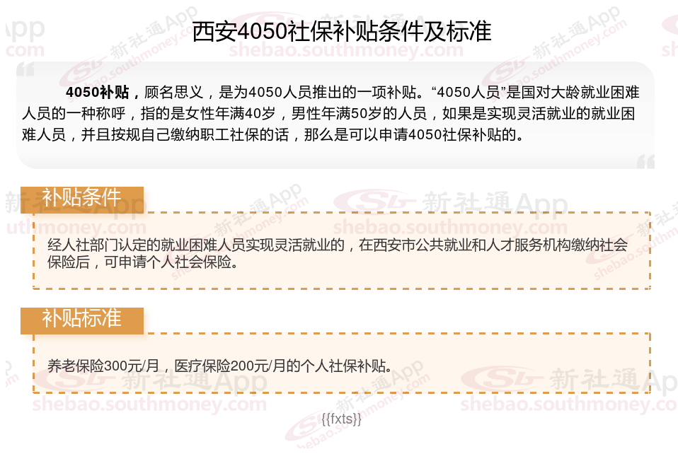 二、2025年西安4050社保补贴标准及条件,最新如下: