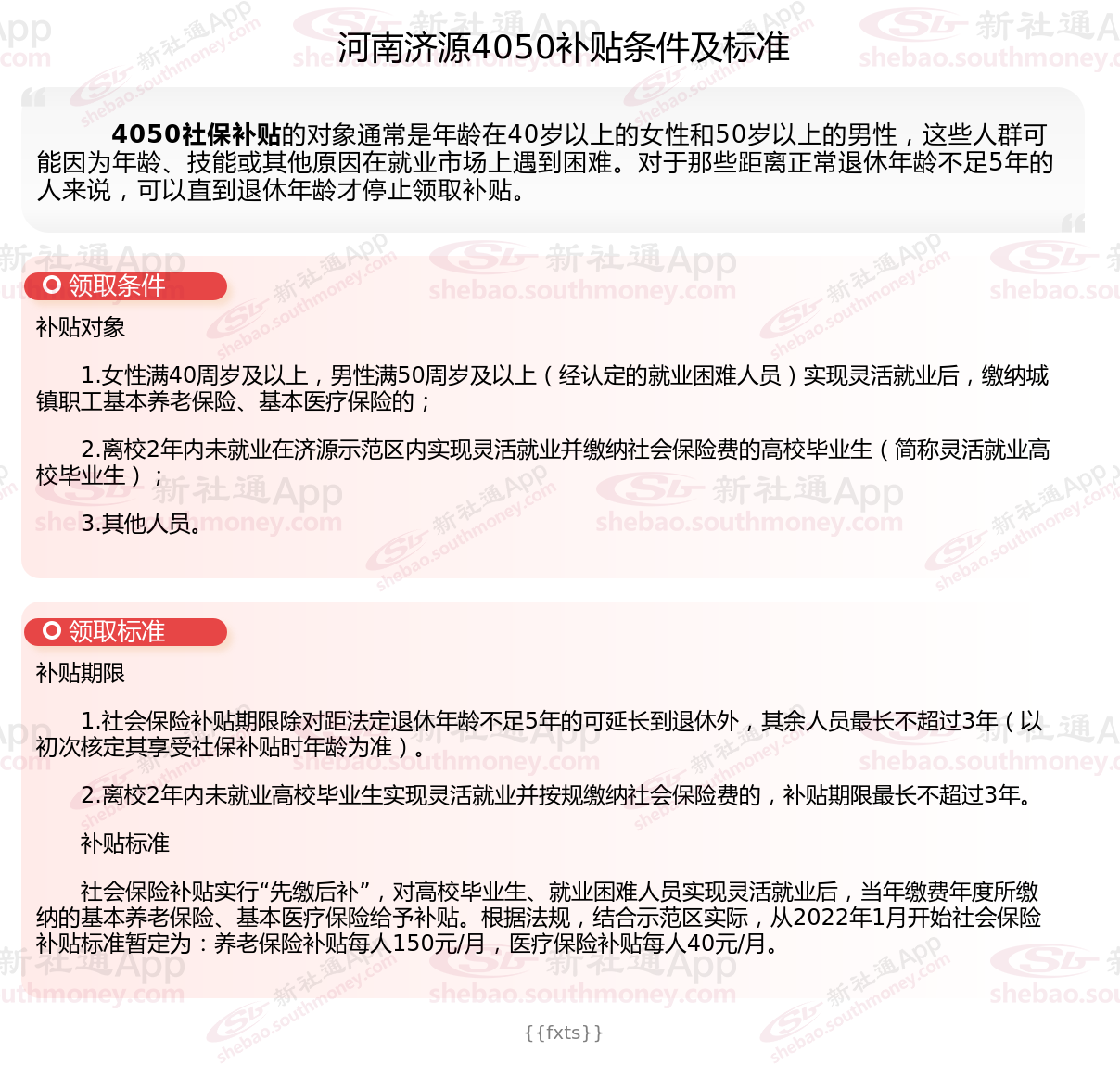 一、河南济源4050社保补贴标准是什么?附条件