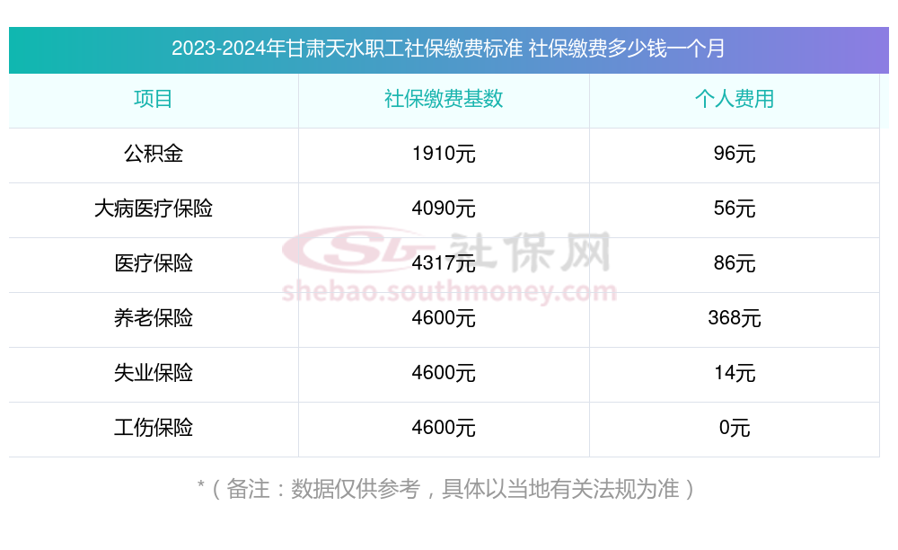 甘肃天水2025年社保缴费个人和公司各承担多少?甘肃天水五险一金每月最低交多少?下表是2025年甘肃天水社保费用明细参考,新社通app-社保缴费查询工具提供的最新数据如下: