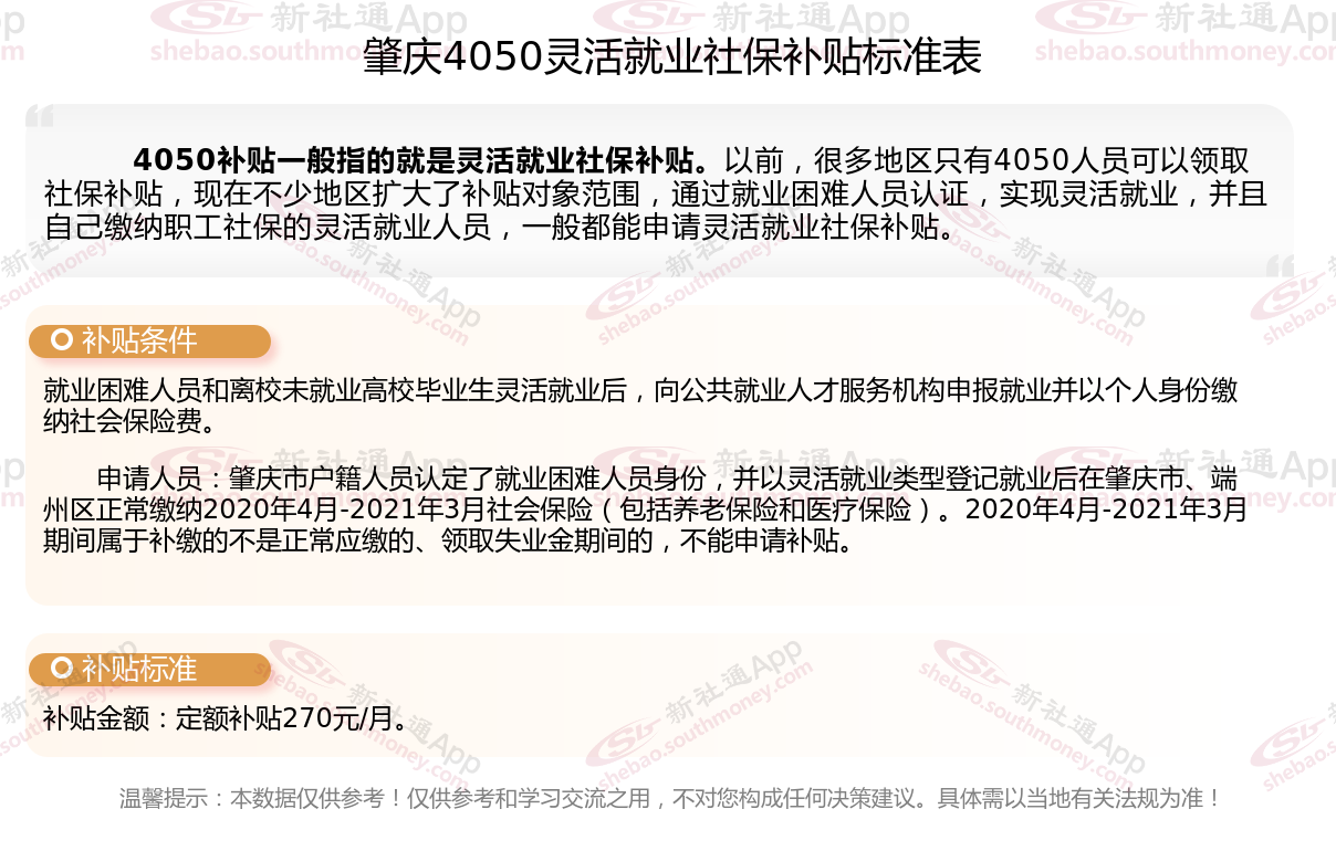一、肇庆4050社保补贴标准及条件2025年最新消息