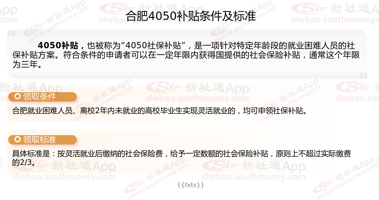 一、合肥4050社保补贴标准及条件2025年最新消息