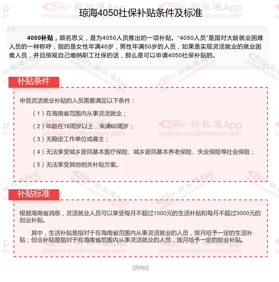 二、2025年琼海4050社保补贴标准(琼海4050灵活就业人员补贴标准是多少钱?琼海2025年4050补贴新规能领多少钱?)