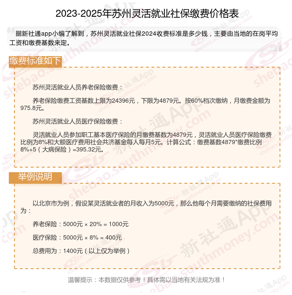 据新社通app数据显示,苏州灵活就业养老保险缴费基数2024-2025年最新标准如下: