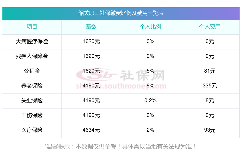 根据新社通app-社保缴费查询工具提供的最新数据, 韶关社保缴费比例社保缴费比例包括以下几个部分: