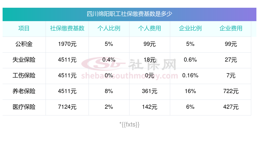 四川绵阳缴费社保比例一览 社保公司和个人各交多少?下表是2024-2025年四川绵阳社保费用明细参考,新社通app-社保缴费查询工具提供的最新数据如下: