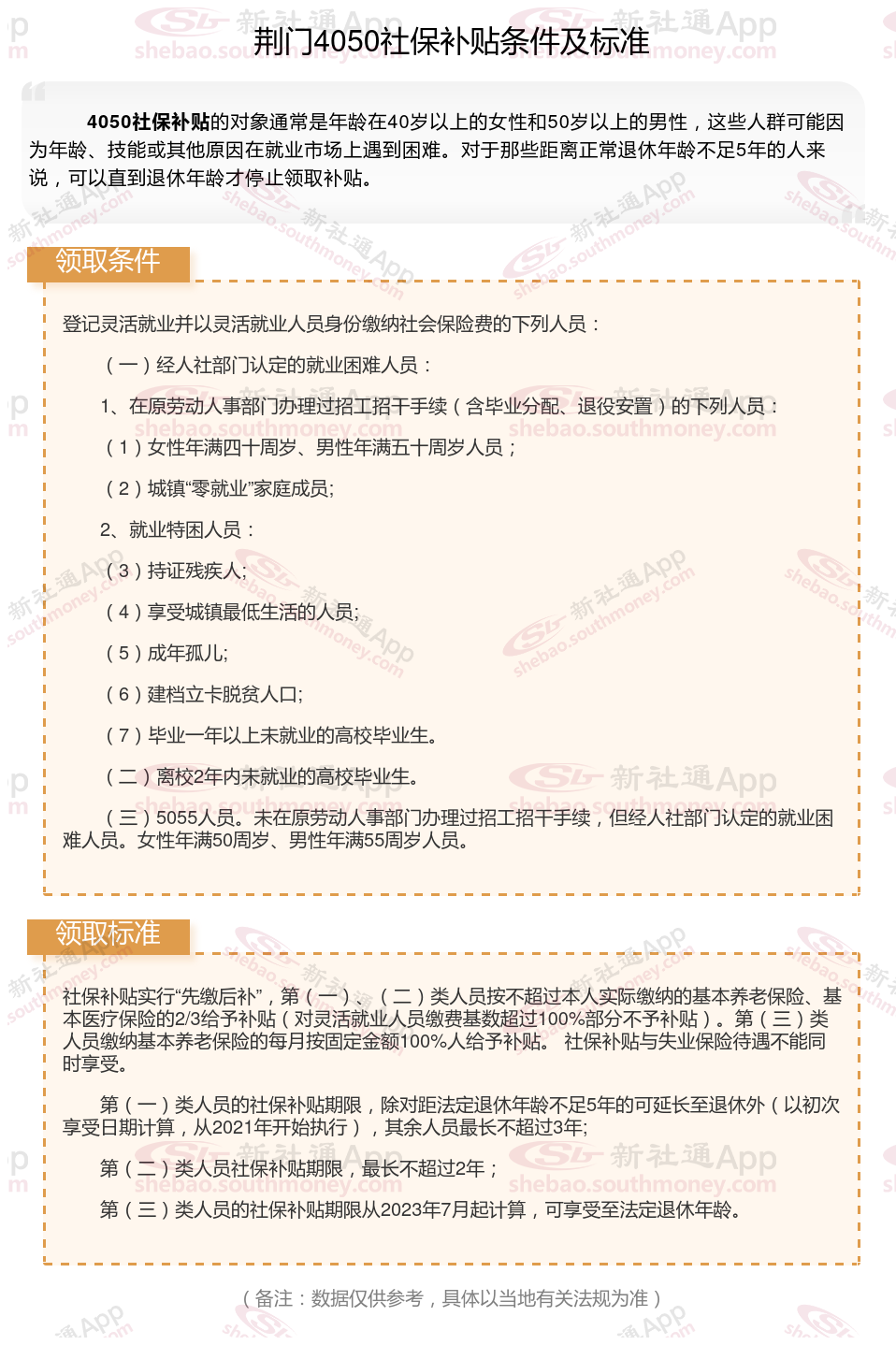 二、荆门4050社保补贴标准及条件2025年,最新如下