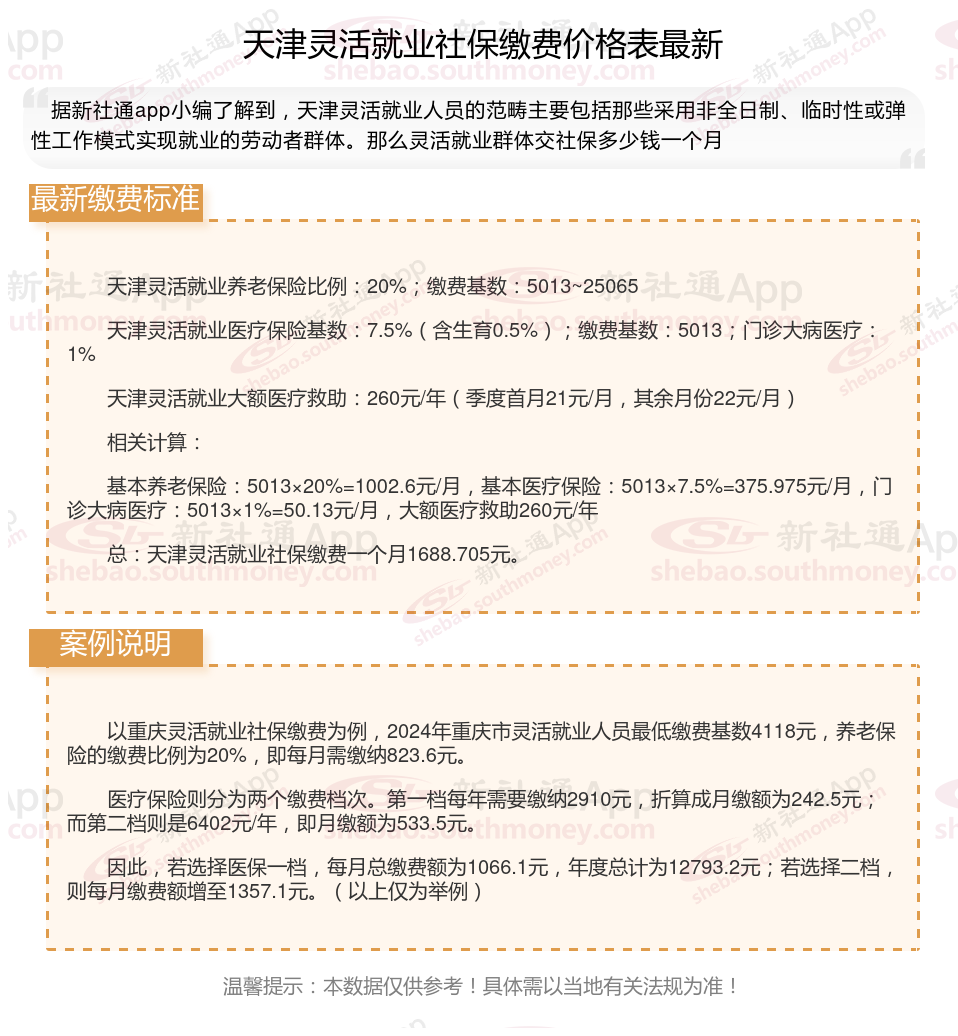 据新社通app数据显示,天津灵活就业人员养老缴费基数2024-2025年最新标准如下: