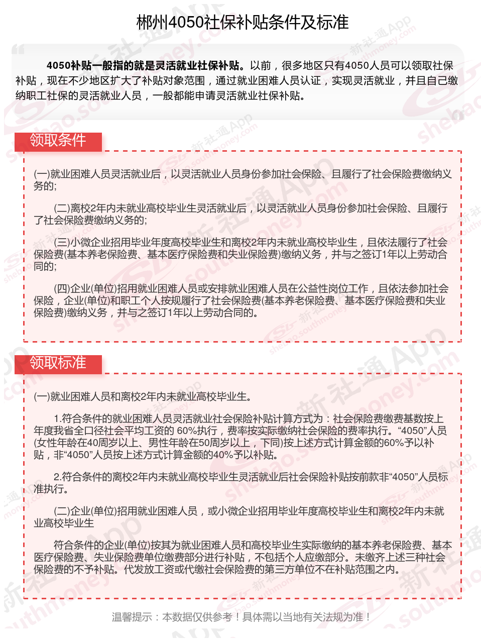 一、2025年郴州4050社保补贴标准及条件是多少?
