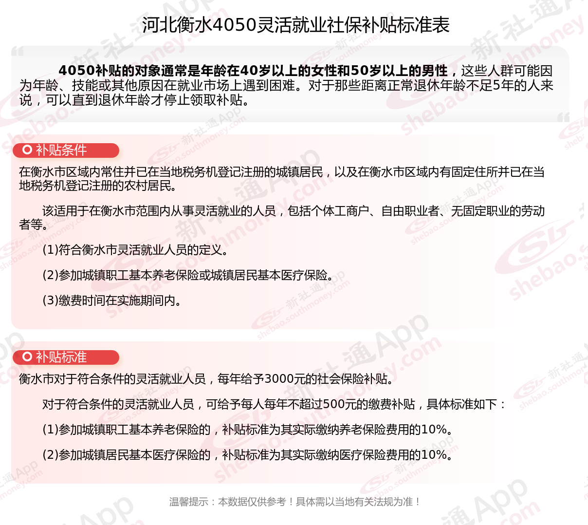 二、河北衡水4050社保补贴标准及条件2025年最新消息