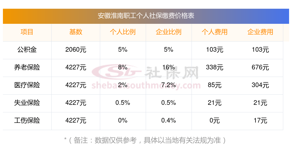 2025年安徽淮南社保缴费多少钱?下表是2024-2025年安徽淮南社保费用明细参考,新社通app-社保缴费查询工具提供的最新数据如下: