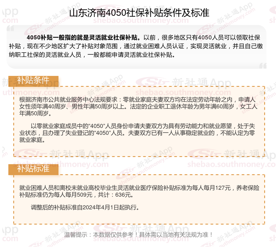 一、山东济南4050社保补贴标准及条件2025年最新消息