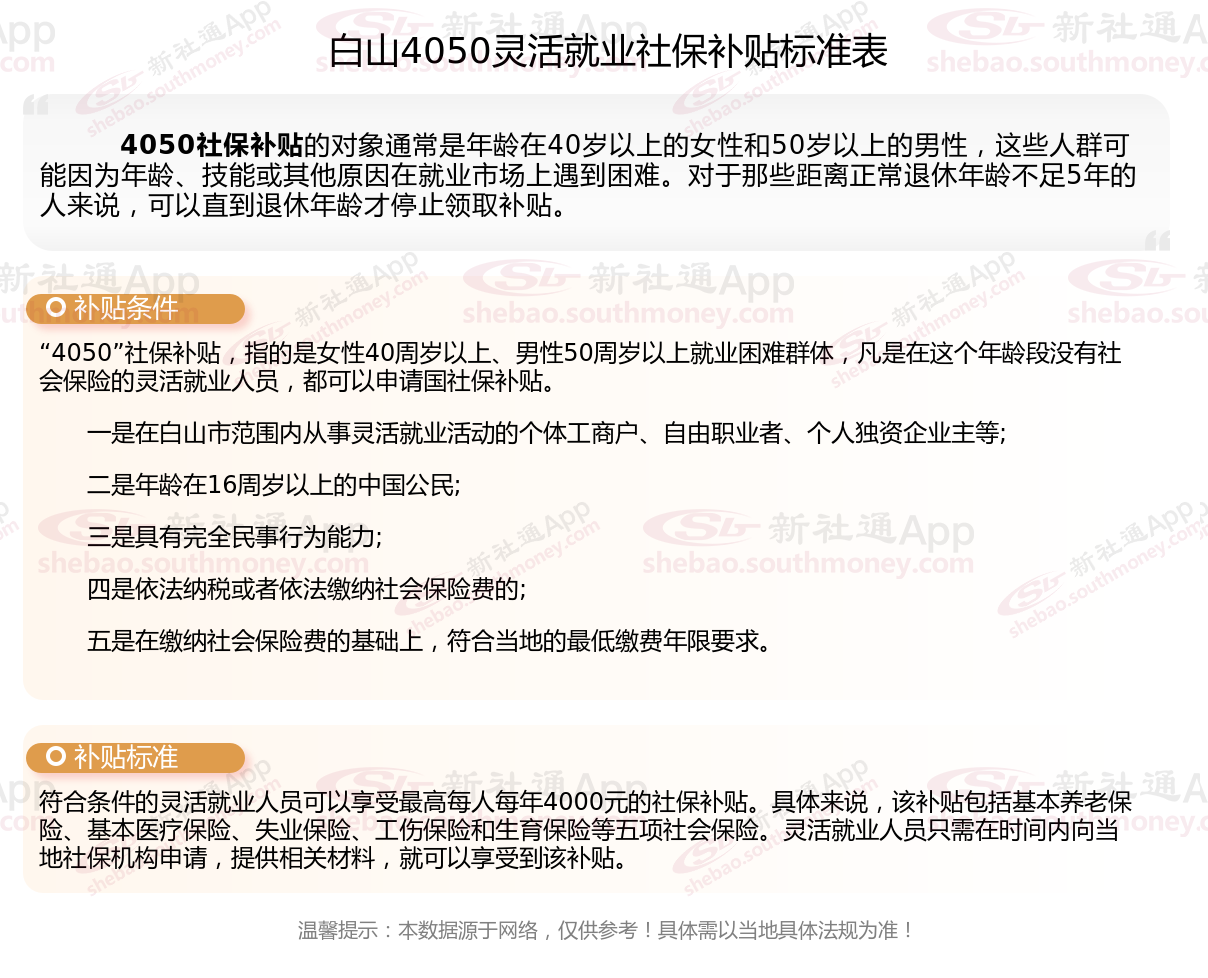 二、白山4050社保补贴多少钱一个月,白山4050社保补贴新规2025年最新标准