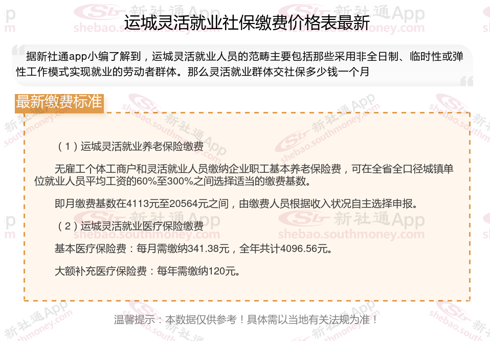 运城灵活就业人员基本养老保险缴费基数暂按不低于4113元;