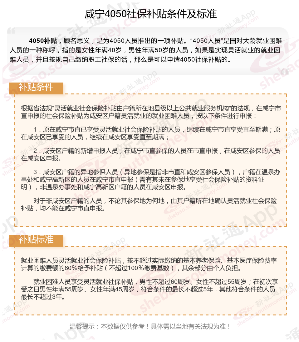 一、最新咸宁4050社保补贴标准及条件