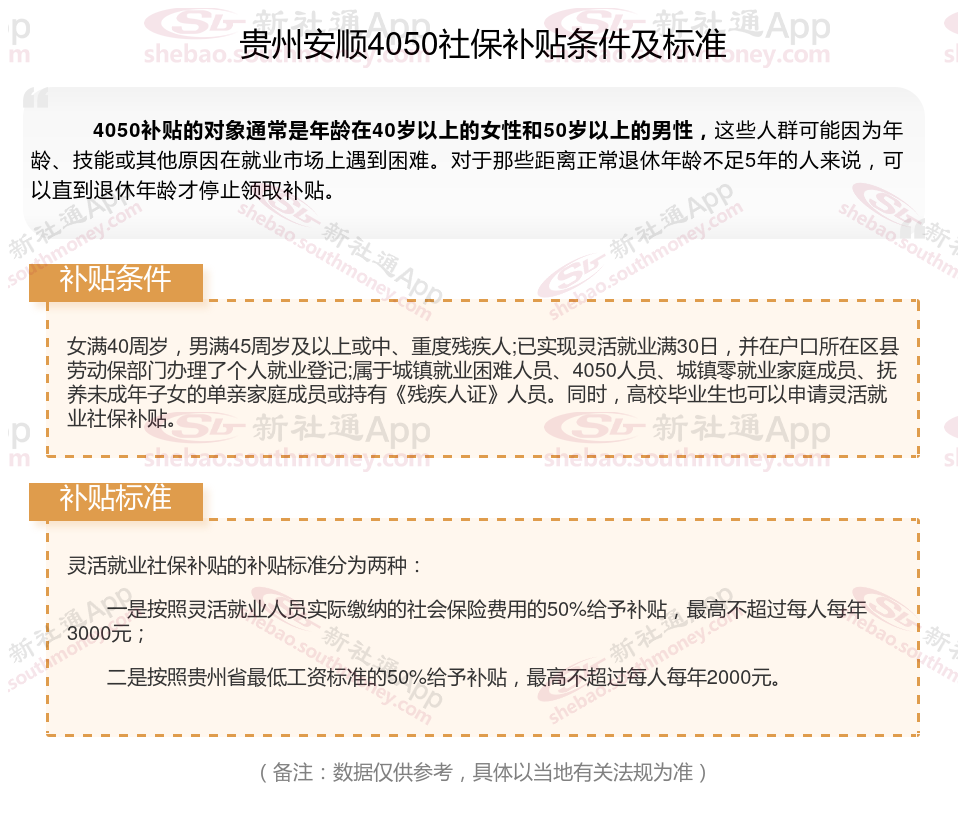 二、2025年贵州安顺4050社保补贴标准(贵州安顺4050灵活就业人员补贴标准是多少钱?贵州安顺2025年4050补贴新规能领多少钱?)