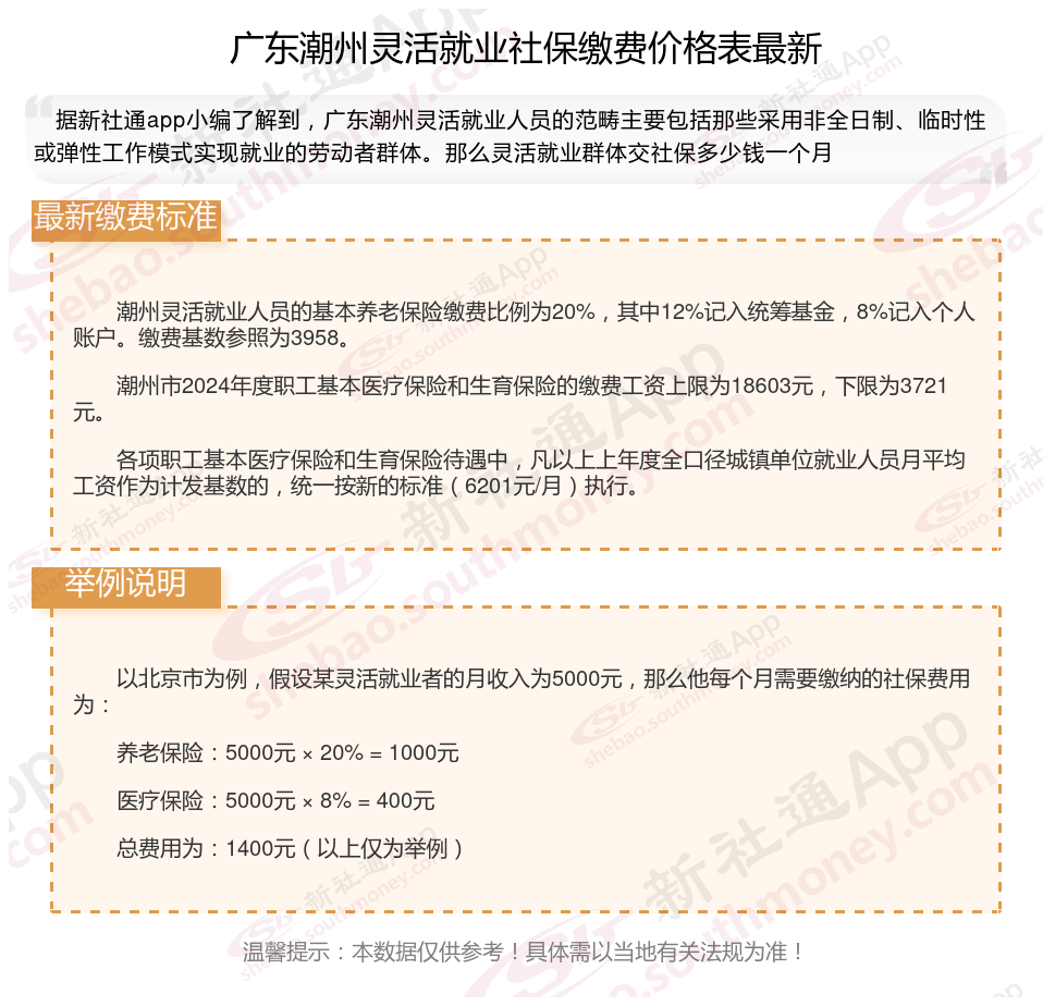 广东潮州灵活就业人员的社保缴费标准是多少?根据新社通app-社保缴费查询工具提供的最新数据如下:
